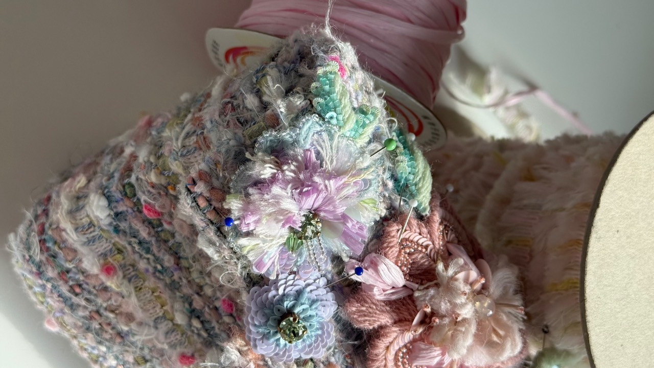 I will show how I created a tweed handbag — weaving the tweed myself, building the embroidery based on an inspiration board — and you will be able to recreate one of its fragments yourself.